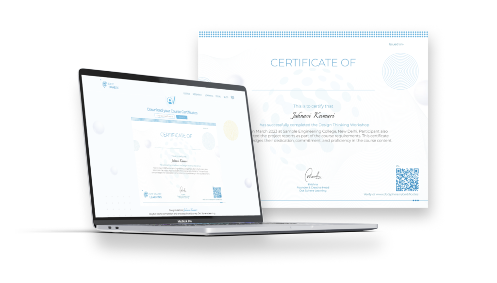 Participants receive shareable digital certifications and project showcases that validate applied design thinking, creativity, and real-world problem-solving skills.